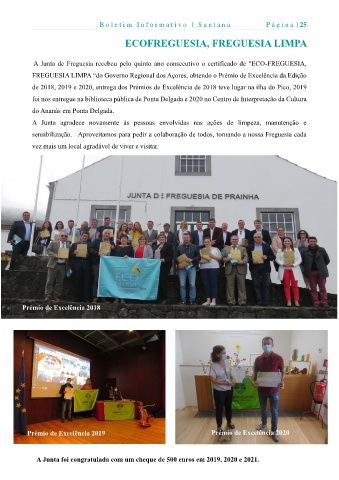 FREGUESIA LIMPA “do Governo Regional dos Açores, obtendo o Prémio de Excelência da Edição